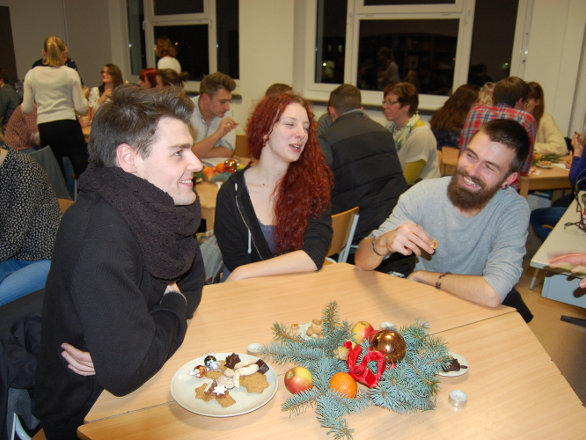 Traditionell hatte das Gymnasium am Nachmittag des letzten Schultages vor Weihnachten zum Alumni-Treffen eingeladen. Mehr als 70 ehemalige Schülerinnen und Schüler folgten der Einladung und nutzten die Gelegenheit, sich mit ihren ehemaligen Lehrern zu unterhalten bzw. gegenseitig Erfahrungen auszutauschen.