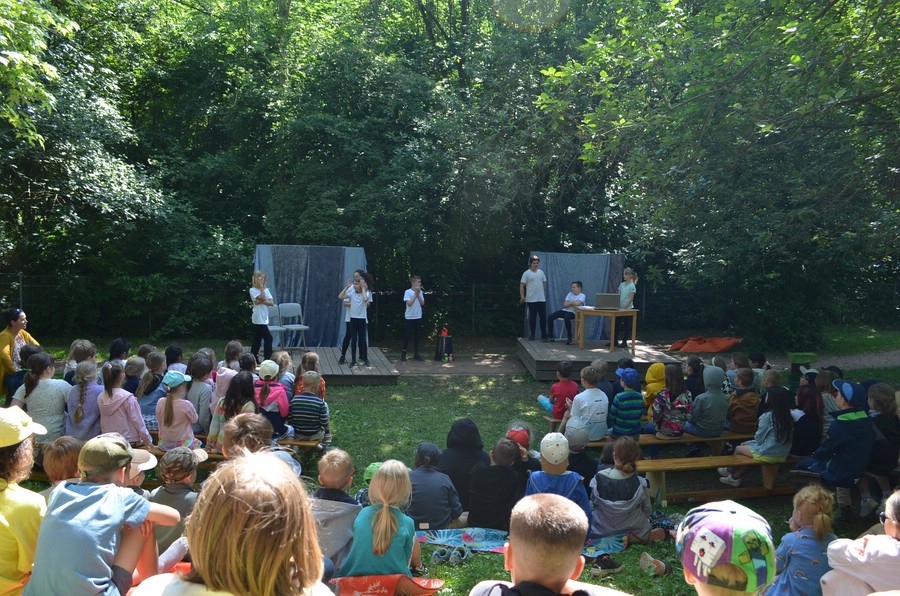 Am Freitag unserer Theaterwoche verwandelte sich der Schulhof in eine lebendige Theaterbühne: Die Klasse 4a präsentierte ihr selbst entwickeltes Stück zum Thema "Pubertät". Ein Thema, was viele Kinder in diesem Alter bewegt.