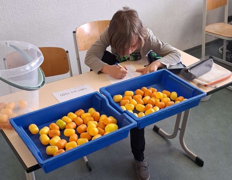 In Vorbereitung auf den alljährlichen Osterlauf bekam die Klassenstufe 4 einen besonderen Auftrag: die Überraschungseier vom Vorjahr sortieren, auf Vollständigkeit prüfen und mit den neu dazugekommenen Eiern ergänzen.
