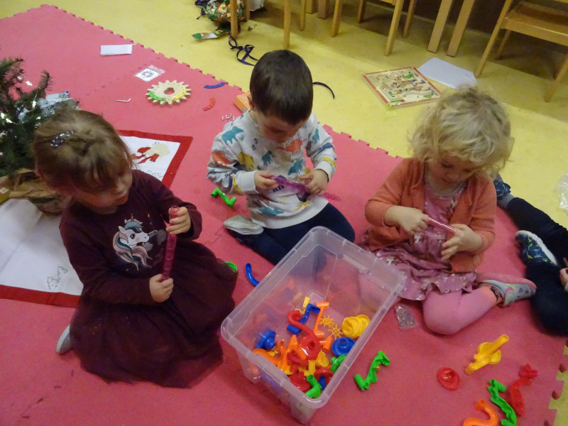 Unsere Jüngsten erlebten ihr erstes Weihnachtsfest in der Kita. Als wir vom Garten in unsere Gruppenzimmer zurückkehrten, lag da plötzlich ein magischer Sack, oder liebevoll verpackte Geschenke auf der feierlich geschmückten Baumatte.
