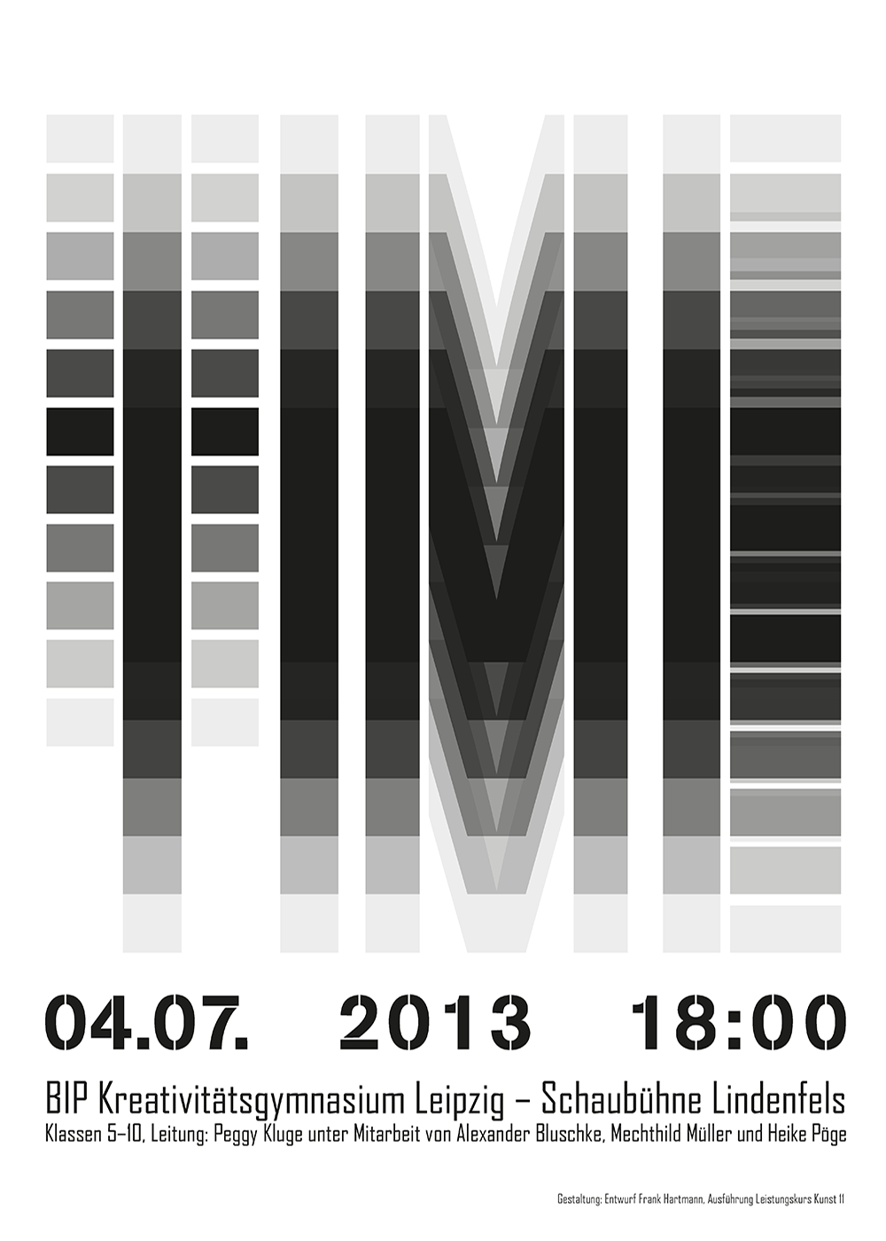 Am 04.07.2013 fand vor ausverkauftem Haus die Uraufführung des Theaterstückes "TIME" von Peggy Kluge mit Schülerinnen und Schülern des BIP Kreativitätsgymnasiums Leipzig vor 350 Gästen im schulöffentlichen Rahmen der Schaubühne Lindenfels in Leipzig statt.